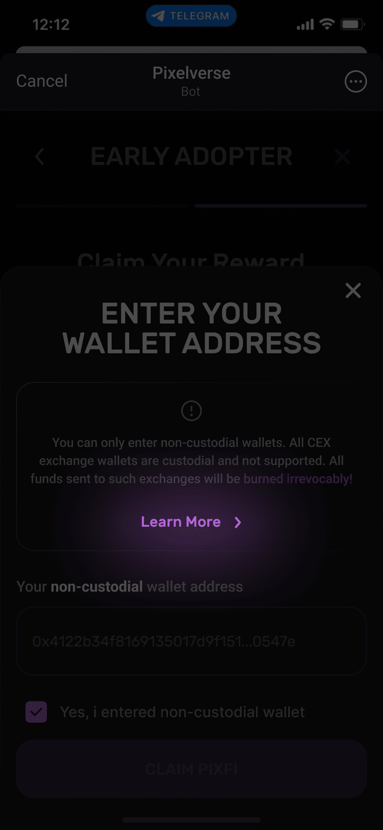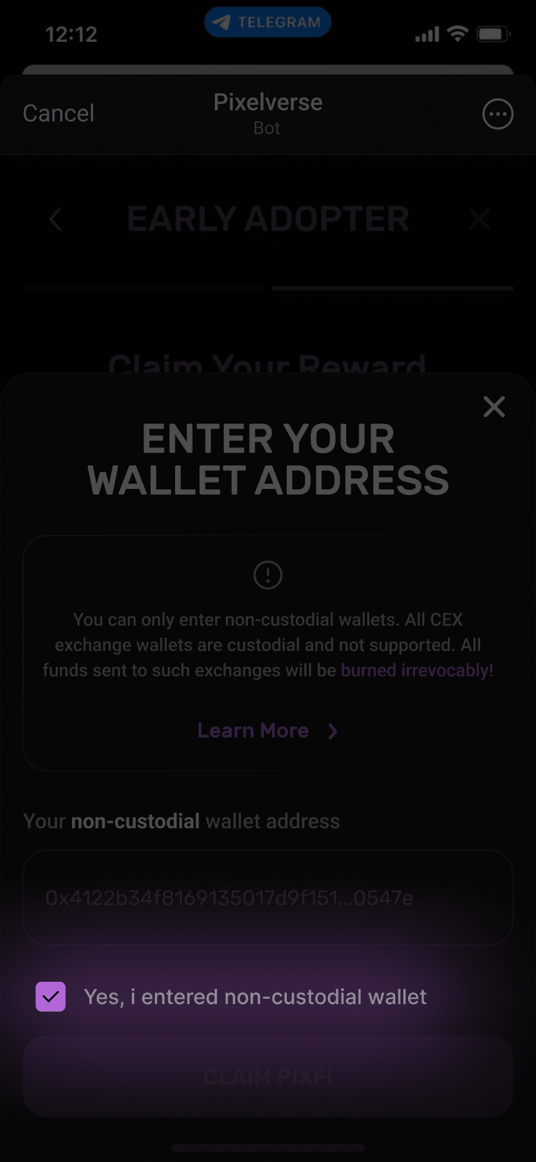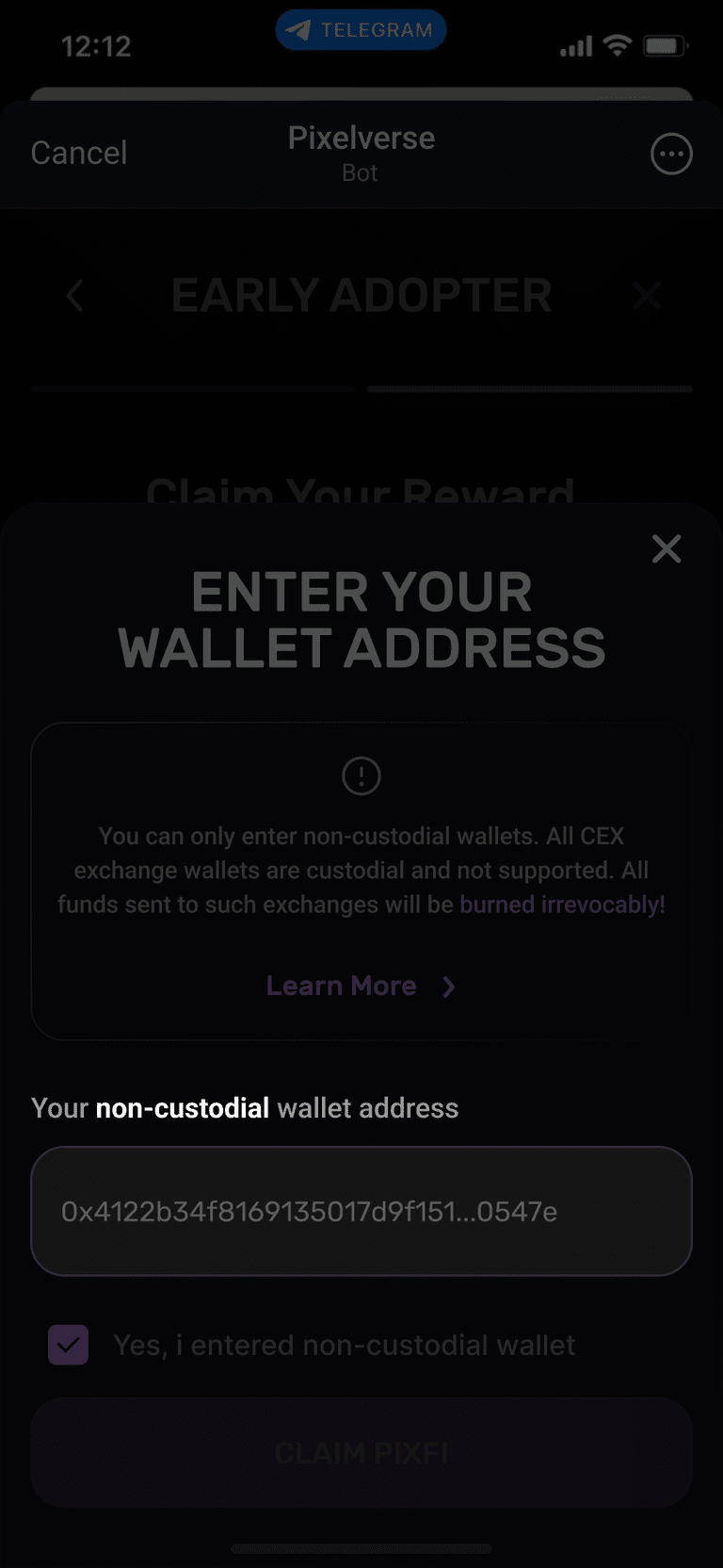Passaggio 4) Qui puoi richiedere il tuo bonus airdrop $PIXFI