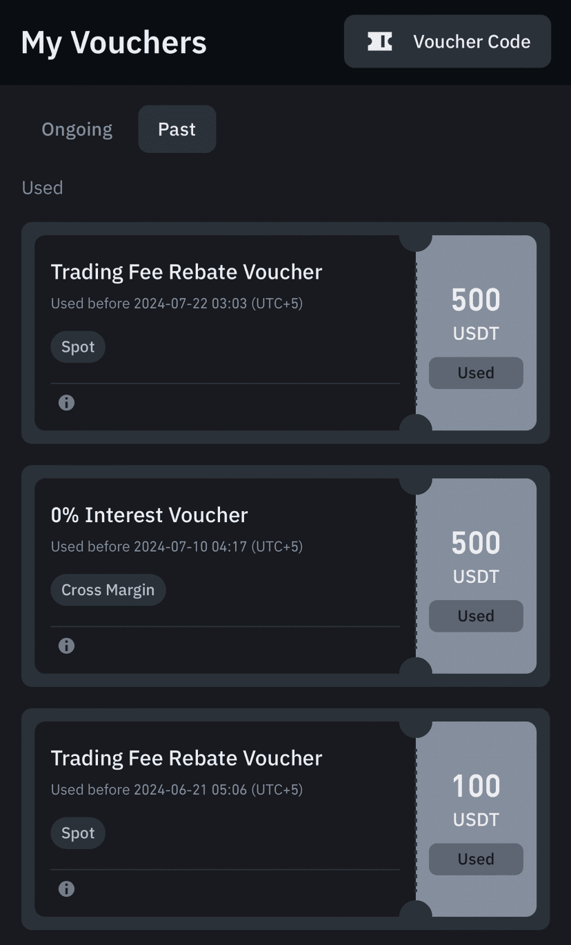 - Quando esegui un'operazione, lo sconto sulla commissione verrà detratto in base ai termini del voucher fino all'esaurimento o alla scadenza del voucher.