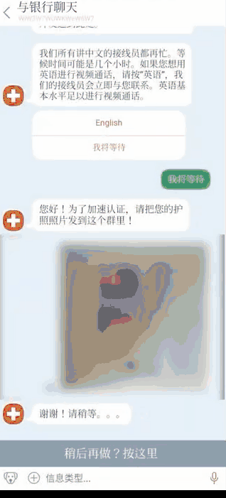 Ricevi il codice di verifica, quindi entra nell'interfaccia del software, trova ---->Chatta con la banca, inserisci la verifica video, in cinese, c'è un servizio clienti cinese...