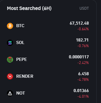 Nella pagina di Binance puoi vedere i token più cercati. Parla di questi token darà ai tuoi post una spinta in più.