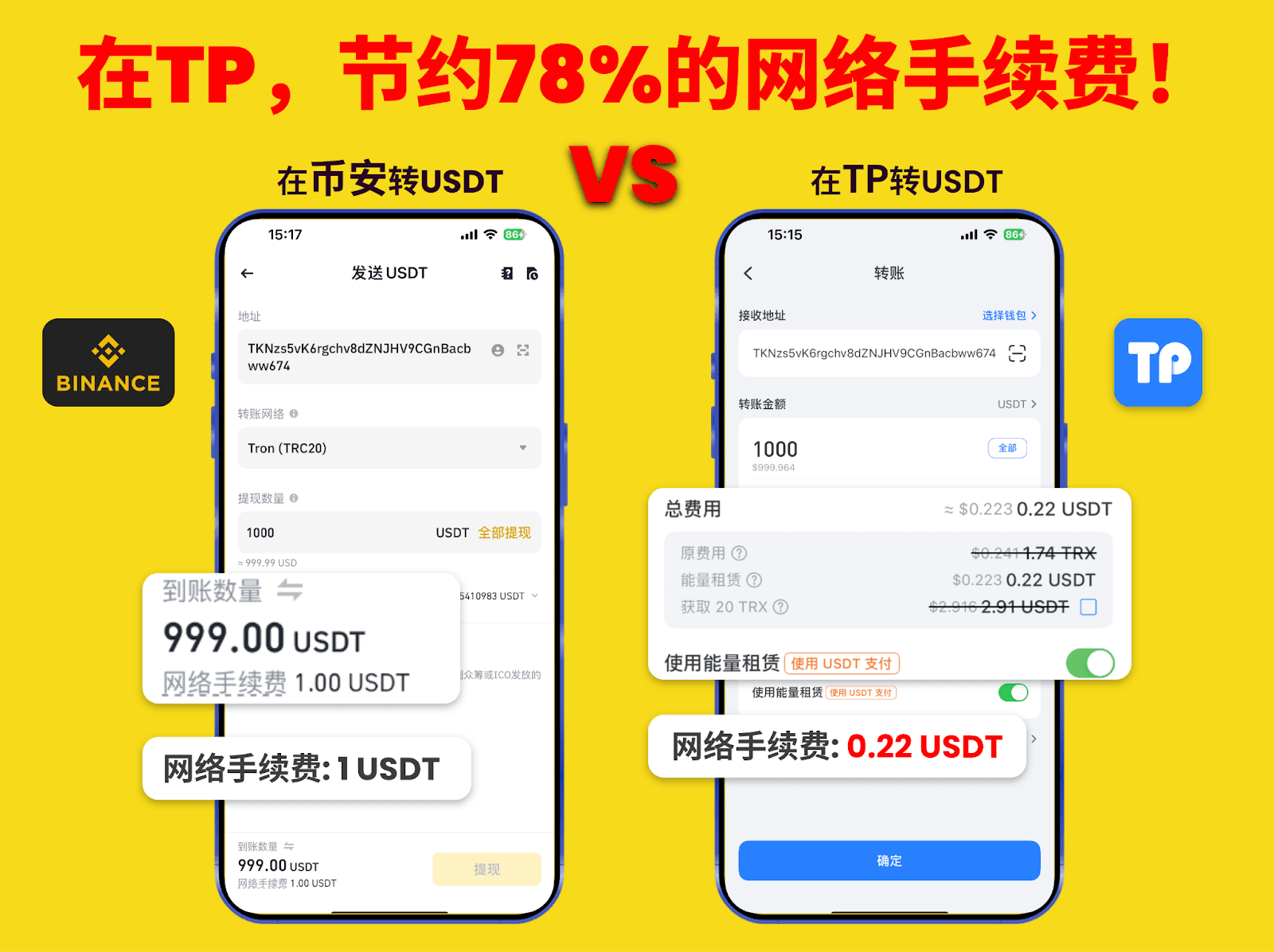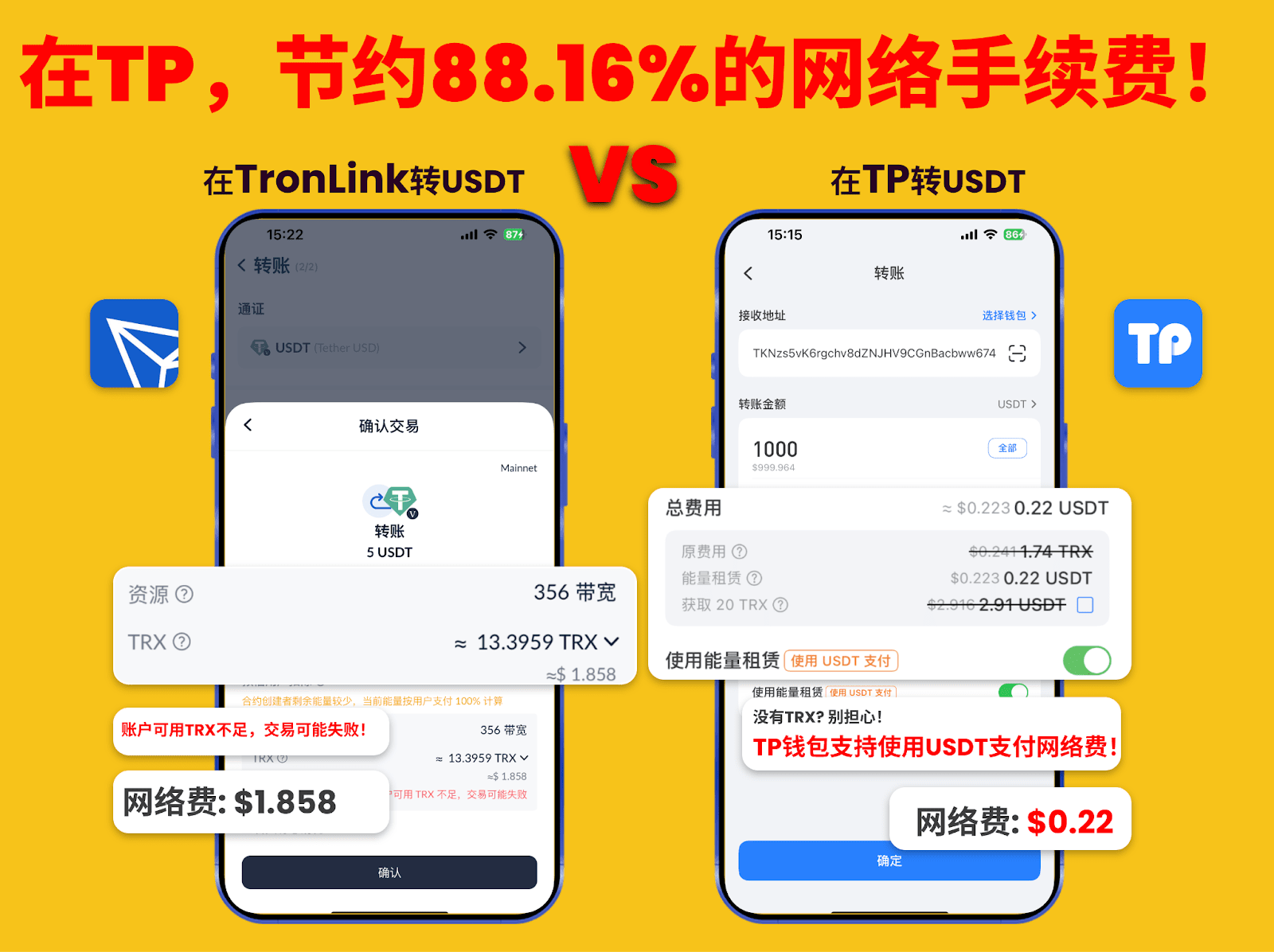 Usare il portafoglio TP per trasferire USDT su TRON al costo più basso è la scelta migliore!