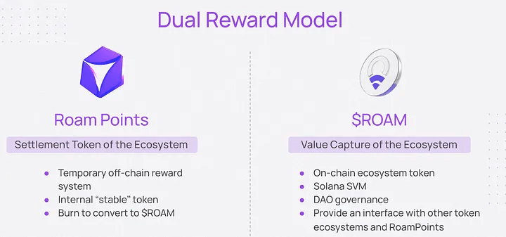 Roam adotta un modello a tre token non strettamente parlando, tra cui: NFT, $ROAM e Roam Points.
