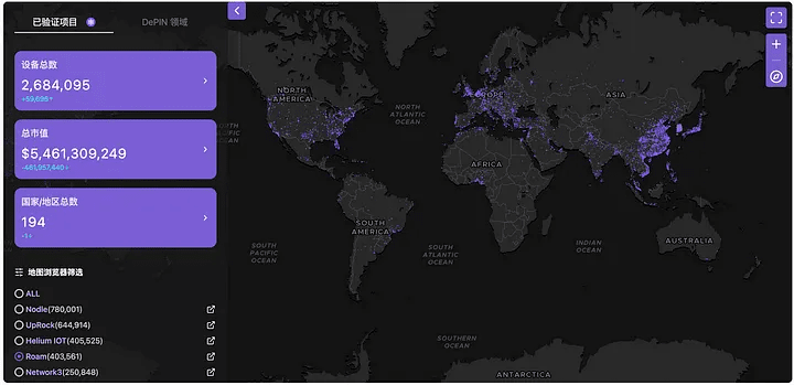 Dal sito web DePINscan possiamo vedere che Roam è al quarto posto in termini di numero di nodi, che equivale a Helium.