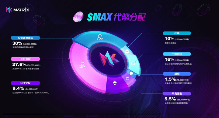 MAX è il token di governance della piattaforma MATR1X. Non c'è alcuna raccolta fondi pubblica, nessuna vendita privata e una fornitura totale di 1 miliardo. È progettato per supportare applicazioni e servizi all'interno dell'ecosistema.