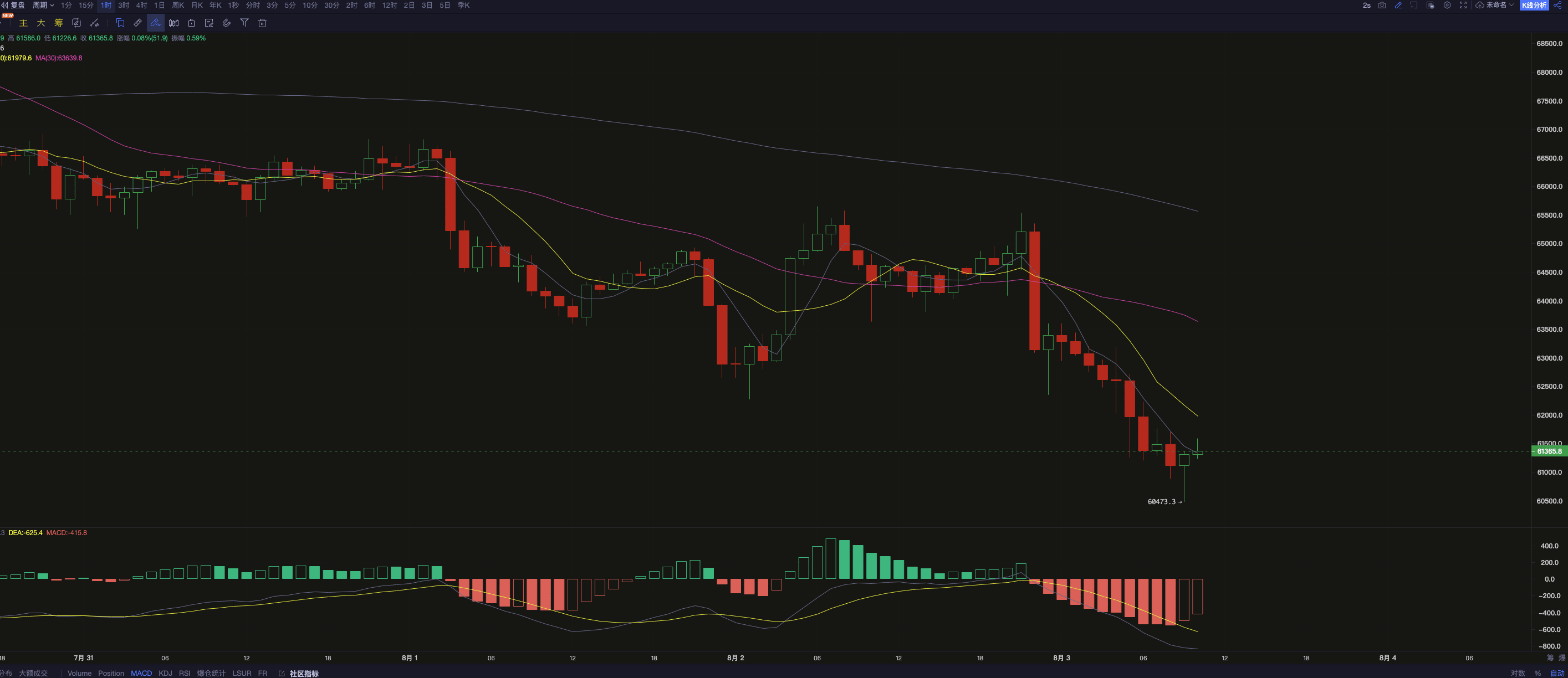 A giudicare dal grafico a un’ora, il prezzo del Bitcoin è rimbalzato fino alla linea dei 61.500 e poi è ricaduto nuovamente, formando un livello di pressione a breve termine. Il sistema della media mobile MA mostra che esiste una richiesta di rimbalzo a breve termine, ma la pressione al di sopra è ancora elevata. Anche se l'indicatore MACD mostra segni di una croce dorata nella parte inferiore, lo slancio non è forte, riflettendo il forte atteggiamento di attesa del mercato.