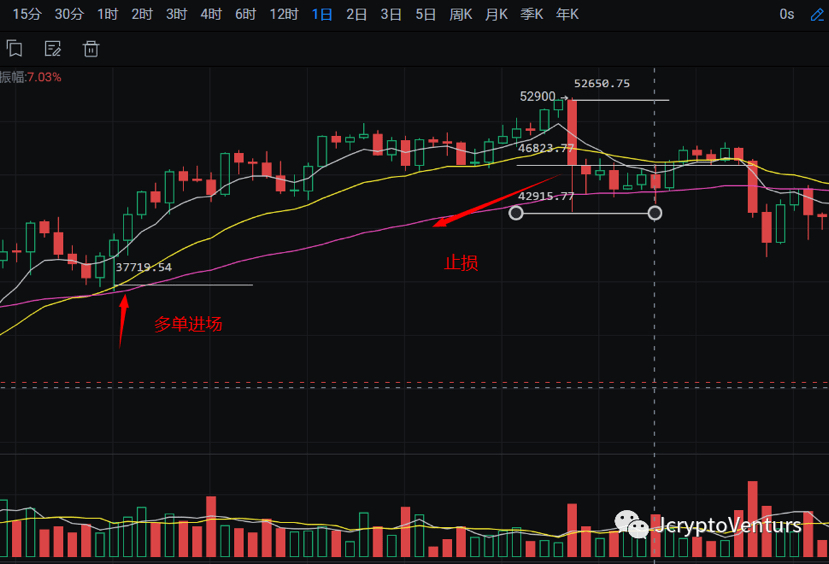Esempio: la linea giornaliera è sopra EMA60, un trend rialzista, la linea giornaliera scende sotto EMA60, un ordine lungo di BTC37700 entra nel mercato, acquista 2 BTC e quando il prezzo BTC raggiunge 52900, realizzerai un profitto di 30400 US dollari Se il tuo metodo di stop loss si basa sul prezzo di chiusura giornaliero. Se scende al di sotto dell'EMA7 per fermare la perdita, quando chiudi la posizione, realizzerai un profitto di 18.246 dollari USA e il minimo scende a 10.000 dollari USA. Se si utilizzano indicatori per arrestare la perdita, non è possibile prevedere le perdite o addirittura la liquidazione causate da condizioni di mercato estreme. Se si utilizza un trailing stop loss Se il profitto viene ritracciato dal 5% al 10% per arrestare la perdita, il profitto sarà pari a. il prezzo di stop loss (51380-52100) è 29380-27400. Il vantaggio è quello di evitare che il ritracciamento dei profitti e condizioni di mercato estreme causino la liquidazione.