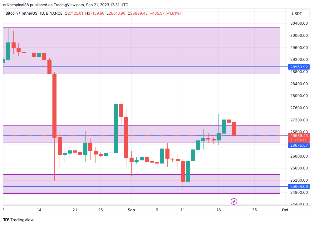 Oggi bitcoin in calo, toccando una delle nostre zone di ingresso.