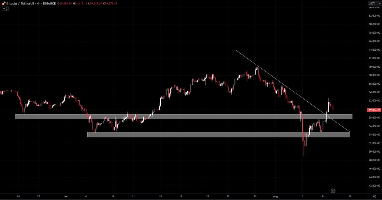 Bitcoin ha recentemente rotto una linea di tendenza al ribasso, provocando un aumento significativo del prezzo. Questo breakout ha indicato un cambiamento nel sentiment del mercato, con gli acquirenti che hanno acquisito il controllo della precedente tendenza al ribasso.