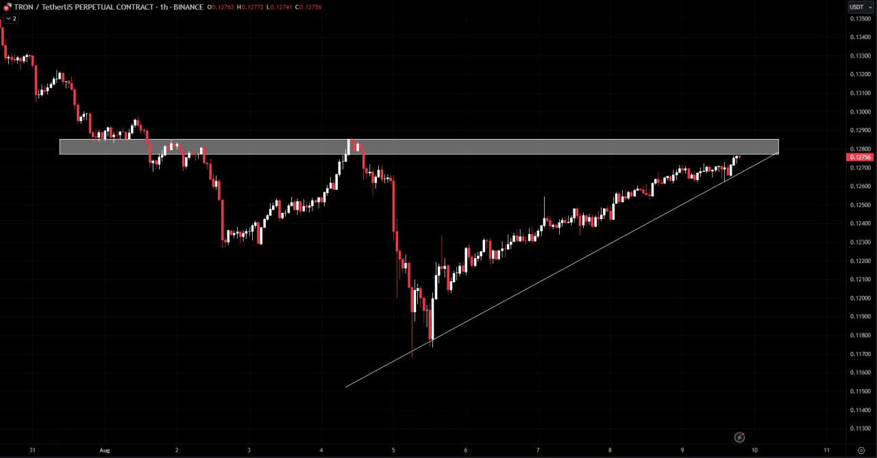 TRX sta attualmente testando un livello di resistenza orizzontale significativo, formando un triangolo ascendente. La prossima mossa del mercato dipenderà probabilmente da come il prezzo interagirà con questa resistenza.