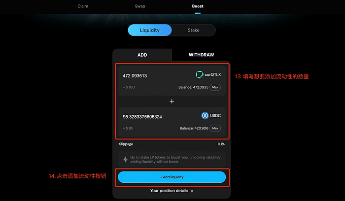 10. Poi fornire liquidità per accelerare lo sblocco dei punti di staking.