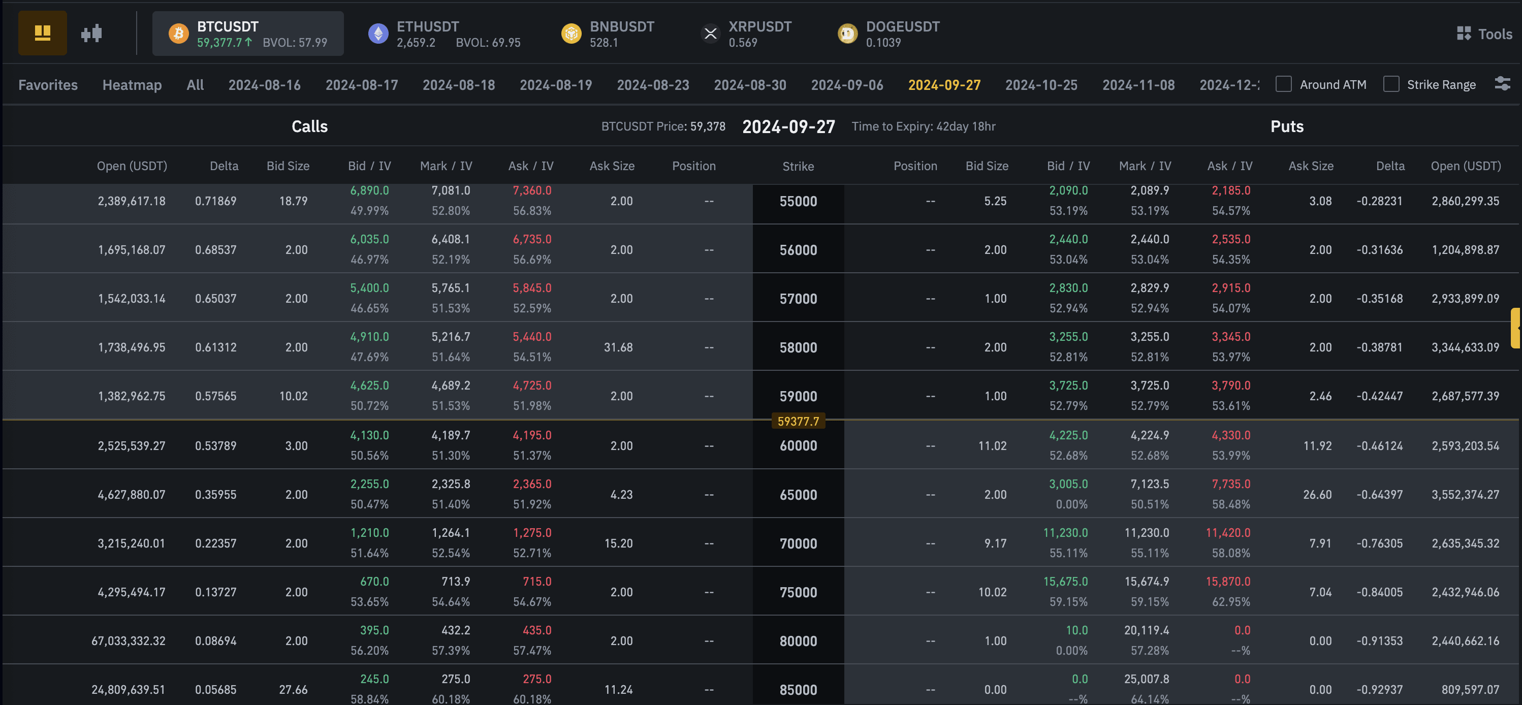 A proposito, se hai notato, ci sono due fattori importanti che influenzano il prezzo del contratto. La data di scadenza del contratto e se il contratto è ITM o OTM. Un altro fattore cruciale è il delta del contratto. Per spiegare con un esempio, supponiamo che tu abbia acquistato un contratto a 62k quando $BTC era a 60,000, e il prezzo è salito a 60,100. C'è un aumento di $100, se il delta del tuo contratto è 0.5, il valore del contratto aumenta di $50. Il delta inizia sempre vicino a 0 in un contratto call e si muove verso 1 man mano che la data si avvicina. In un contratto put, inizia vicino a 0 e va a -1. Il delta progredisce sempre in modo logaritmico. Inoltre, il rapporto delta mostra in qualche modo la probabilità che il prezzo raggiunga quel punto. Se il delta è 0.25, si può dire che la probabilità che il prezzo raggiunga quel punto è del 25%.