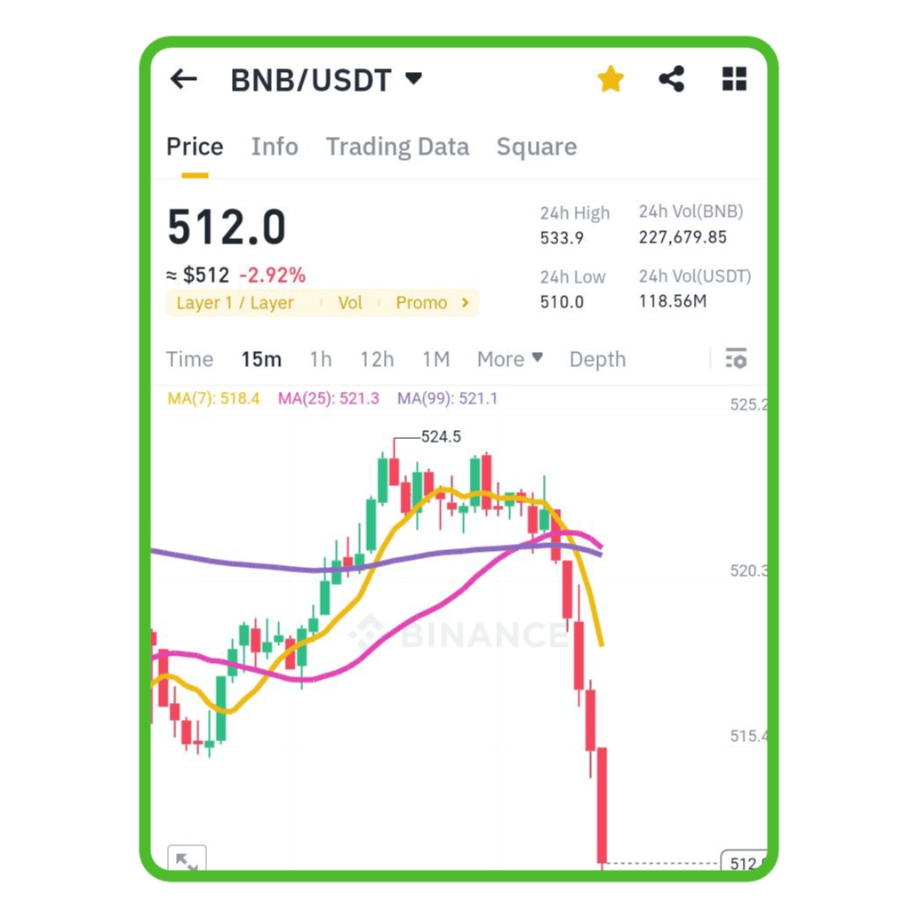Bel $BNB schema da una fluttuazione costante tra $511 - $529 nell'arco di poche ore.