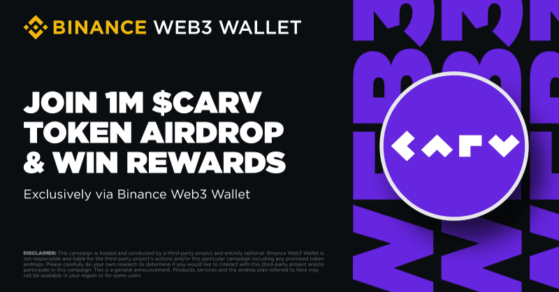 🚀 Fai il primo passo: unisciti all'airdrop di CARV x Binance Web3 Wallet!