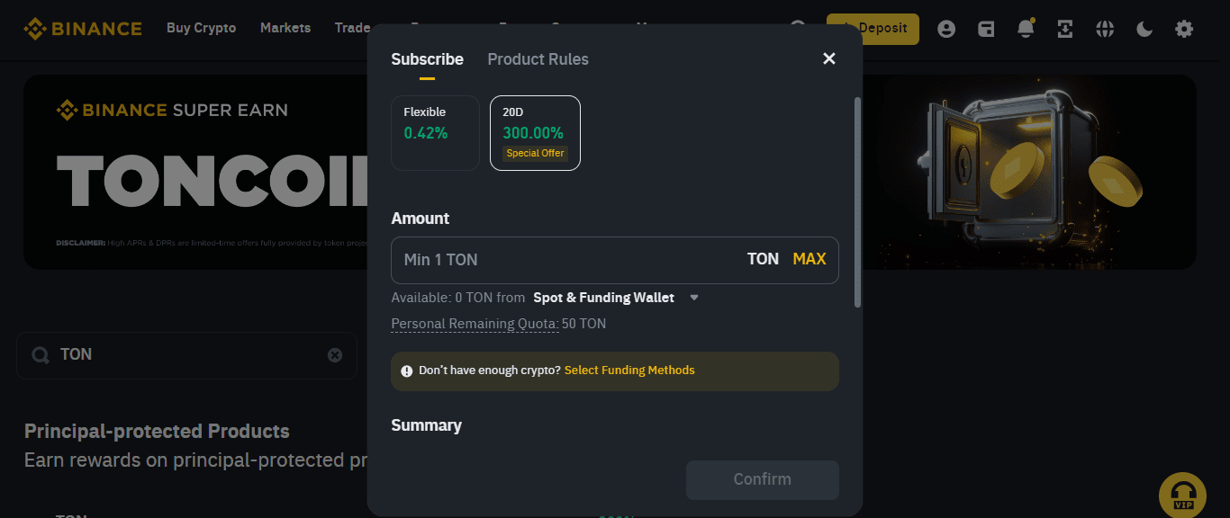 🔶TON Super Earn: sottoscrivi il tuo TON sui prodotti bloccati Simple Earn per guadagnare premi APR speciali del 300% da Binance.