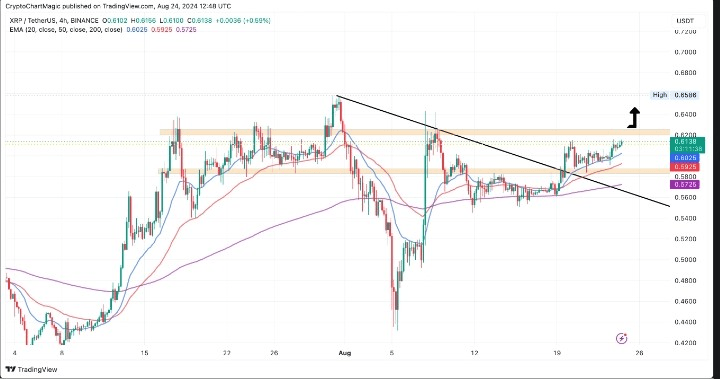Attualmente, il supporto a $ 0,6 è cruciale per il trend rialzista. Allo stesso tempo, la rottura della resistenza a $ 0,62 aumenterà la pressione rialzista e innescherà persino la FOMO. XRP si mantiene sopra l'EMA a 20, 50 e 200 giorni, rafforzando la tesi rialzista. I trader dovrebbero essere cauti nel fare trading di XRP nel breve termine nonostante le prospettive rialziste. La resistenza a $ 0,62 stimolerà il trend rialzista a $ 0,64 e a $ 0,7 o metterà in pausa il rally. Vale la pena prestare attenzione al supporto a $ 0,6 perché se rotto, Ripple potrebbe scendere per ritestare le aree di supporto a $ 0,58 e $ 0,55.