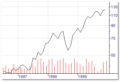 Tra tutti i tipi di grafico, il più semplice è la curva continua. Questa curva rappresenta i prezzi di chiusura delle azioni per ogni giorno, collegati tra loro da una linea.