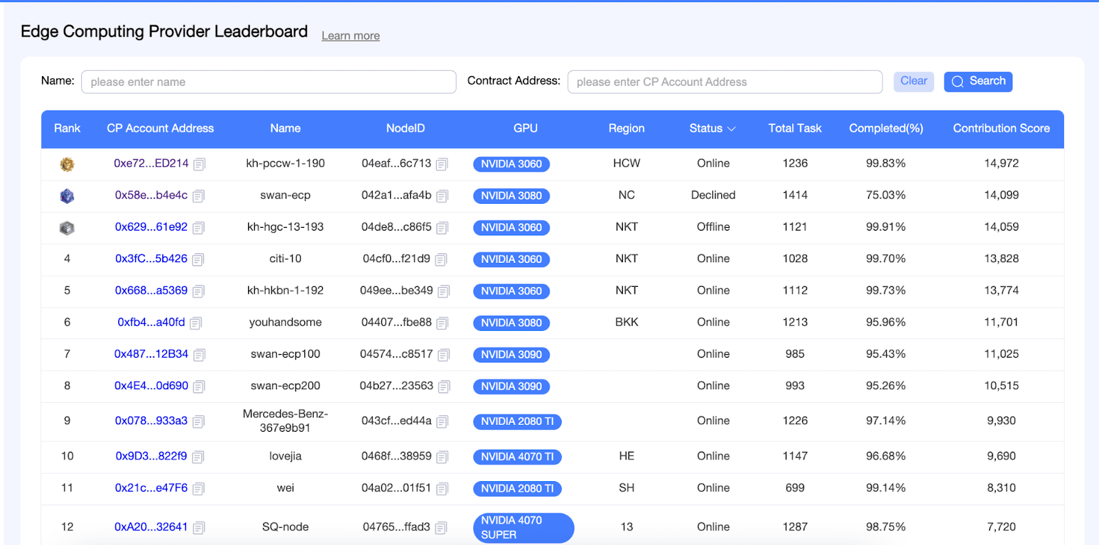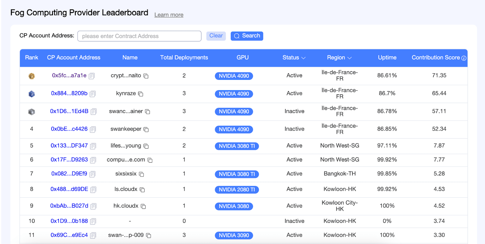 Account CP del primo classificato della rete di prova: https://proxima-explorer.swanchain.io/address/0x2fDAbEA4568F1F8627A49Bd884DA8606fCE42355