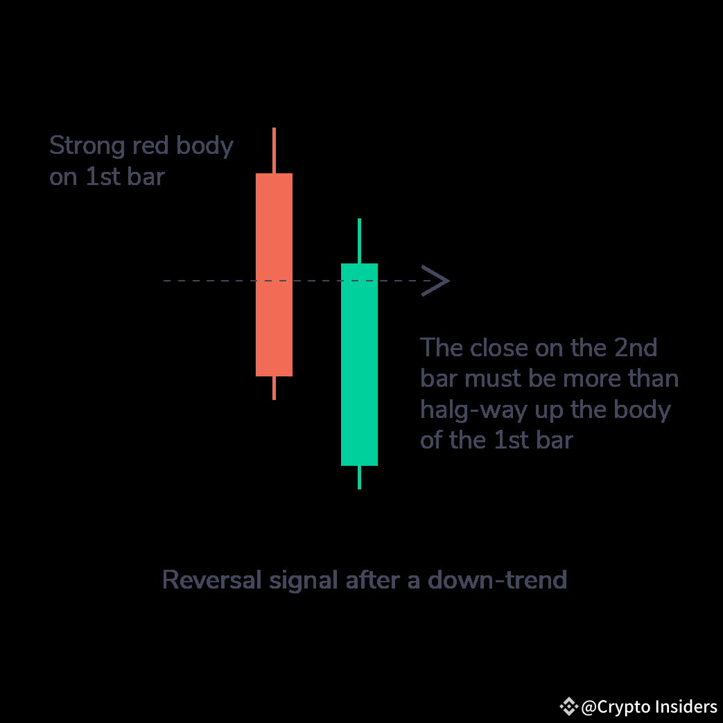Questo è un pattern a due candele con una lunga candela rossa seguita da una lunga candela verde. Inoltre, il prezzo di chiusura della seconda candela deve essere più della metà del corpo della prima candela. Ciò indica una forte pressione di acquisto.
