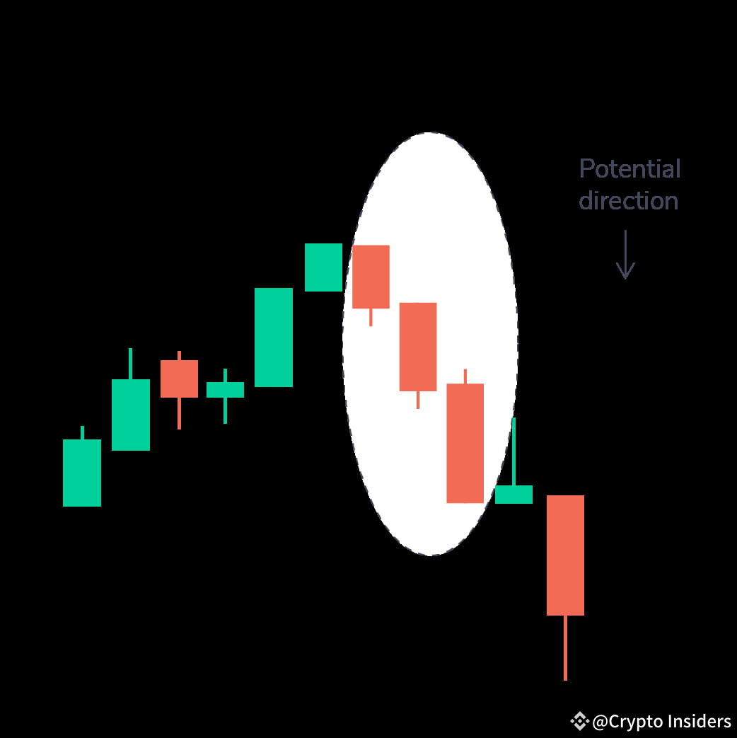 Questo è un pattern a tre candele che ha tre candele rosse consecutive con stoppini corti. Queste candele aprono e chiudono più in basso rispetto al giorno precedente. Dopo un trend al rialzo, questa è una forte indicazione di un imminente mercato ribassista.