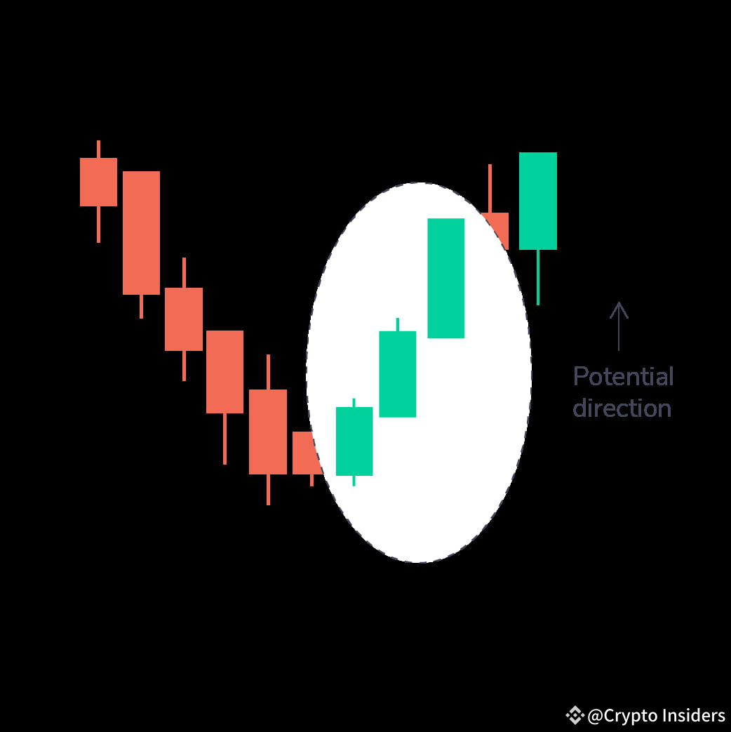 Questo è un pattern a tre candele che ha tre candele verdi con piccoli stoppini. Queste candele aprono e chiudono più in alto rispetto al giorno precedente. Dopo un downtrend, questa è una forte indicazione di un imminente trend rialzista.