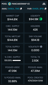 AMAL è legato alla stablecoin USDC, che equivale sempre a 1$, garantendo l'assenza di fluttuazioni di prezzo per la moneta AMAL.