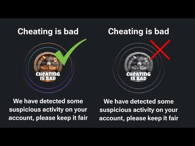 Hamster Kombat ha introdotto una nuova area di risultati chiamata "Cheating is Bad", che mira a rilevare e scoraggiare gli imbrogli nel gioco. Questo badge è visibile a tutti i giocatori, tuttavia è abilitato solo per quelli identificati dal sistema.