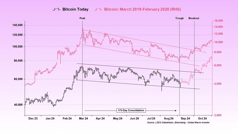 L'ex asset manager e analista finanziario Julien Bittel ha affermato che la struttura dei prezzi di Bitcoin quest'anno sta iniziando a sembrare "stranamente" simile a quella del 2019. Condividendo il grafico sottostante, Bittel ha sottolineato che i movimenti della criptovaluta numero uno nel 2024 sono molto vicini a quelli del 2019.