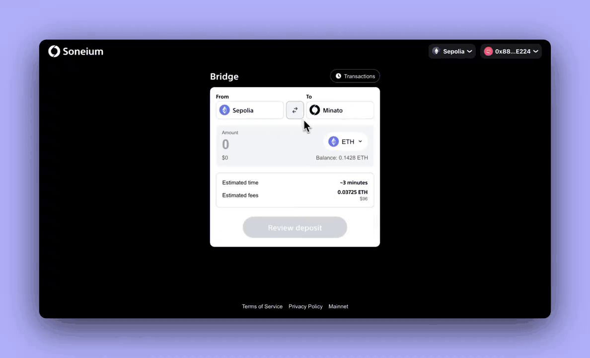 ➤ Esegui transazioni da Sepolia a Minato e ritorno per ricevere una transazione sulla rete Minato.