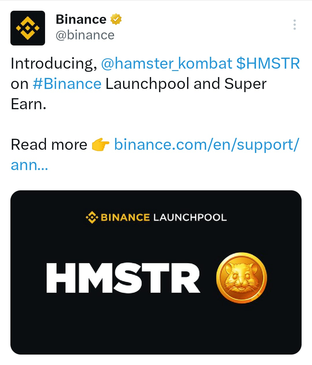 Hamster 🐹 buone notizie specialmente 🗞️ binance launchpool