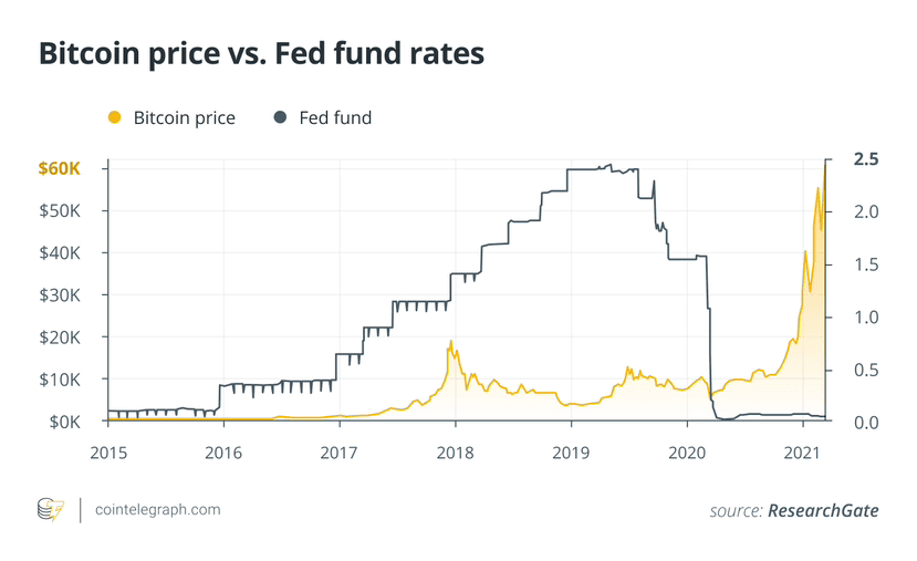 Quando la Fed abbassa i tassi di interesse, i prestiti diventano più economici, aumentando la liquidità e incoraggiando gli investimenti in asset più rischiosi come le criptovalute. Al contrario, l'aumento dei tassi di interesse rende più attraenti gli investimenti più sicuri come le obbligazioni, portando gli investitori ad allontanarsi da asset volatili come le criptovalute, spesso con conseguenti cali dei prezzi.