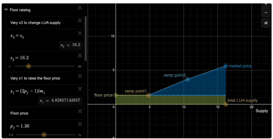 Indipendentemente dal fatto che qualcuno acquisti LUA o meno, il floor pool continuerà ad aumentare la liquidità e il prezzo minimo continuerà a salire finché il prezzo di mercato non sarà uguale al prezzo minimo e l'interazione tra i due pool si interromperà.