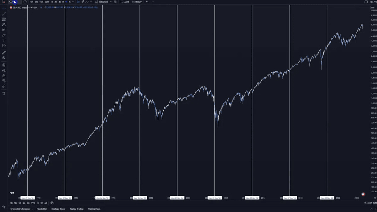 Con l'avvicinarsi delle elezioni presidenziali negli Stati Uniti, vale la pena esaminare come le elezioni passate hanno influenzato il prezzo di Bitcoin. Storicamente, il mercato azionario statunitense ha mostrato tendenze notevoli nei periodi elettorali. Data la correlazione di Bitcoin con le azioni e, in particolare, con l'S&P 500, queste tendenze potrebbero offrire spunti su cosa potrebbe accadere in seguito.
