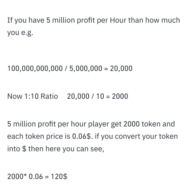 Leggi il mio articolo precedente in cui ho predetto la distribuzione dei token Hmaster Kombat 5 Millions PPH. Secondo quella formula, 5 milioni di PPH e i giocatori di livello 10 ottengono 2000 token. Vedi sotto