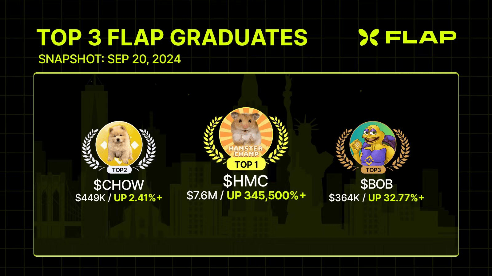 Che tu sia un veterano esperto di criptovalute o un nuovo arrivato con un'idea audace, Flap.sh offre il trampolino di lancio perfetto per trasformare i tuoi sogni di meme in realtà. Non perdere quest'ultima possibilità di essere parte dell'azione: lancia il tuo memecoin e unisciti alle fila di $HMC, $CHOW e $BOB. Riportiamo la stagione dei meme su BNB e cuciniamo qualcosa di leggendario!