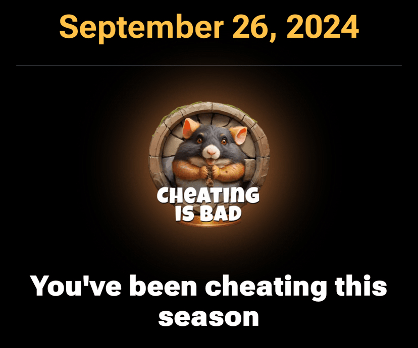 Ho giocato a Hamster Kombat per 117 giorni, ho macinato duro, solo per essere chiamato fuori per imbroglio questa stagione. 😓 È una pillola dura da mandare giù, sapendo che ho appena sprecato tutto quel tempo e quella fatica. L'airdrop del 26 settembre 2024? Sparito.