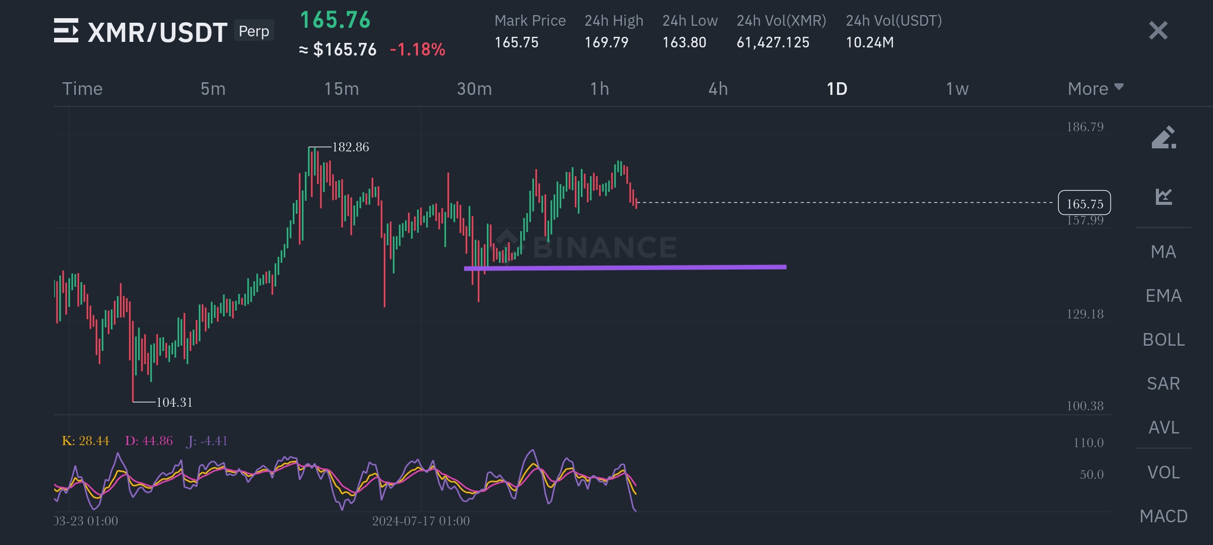 XMR si è mantenuto saldamente attorno a questo livello, mostrando un forte interesse all'acquisto. Ogni calo è stato accolto con acquisti, indicando fiducia nel suo potenziale a lungo termine.