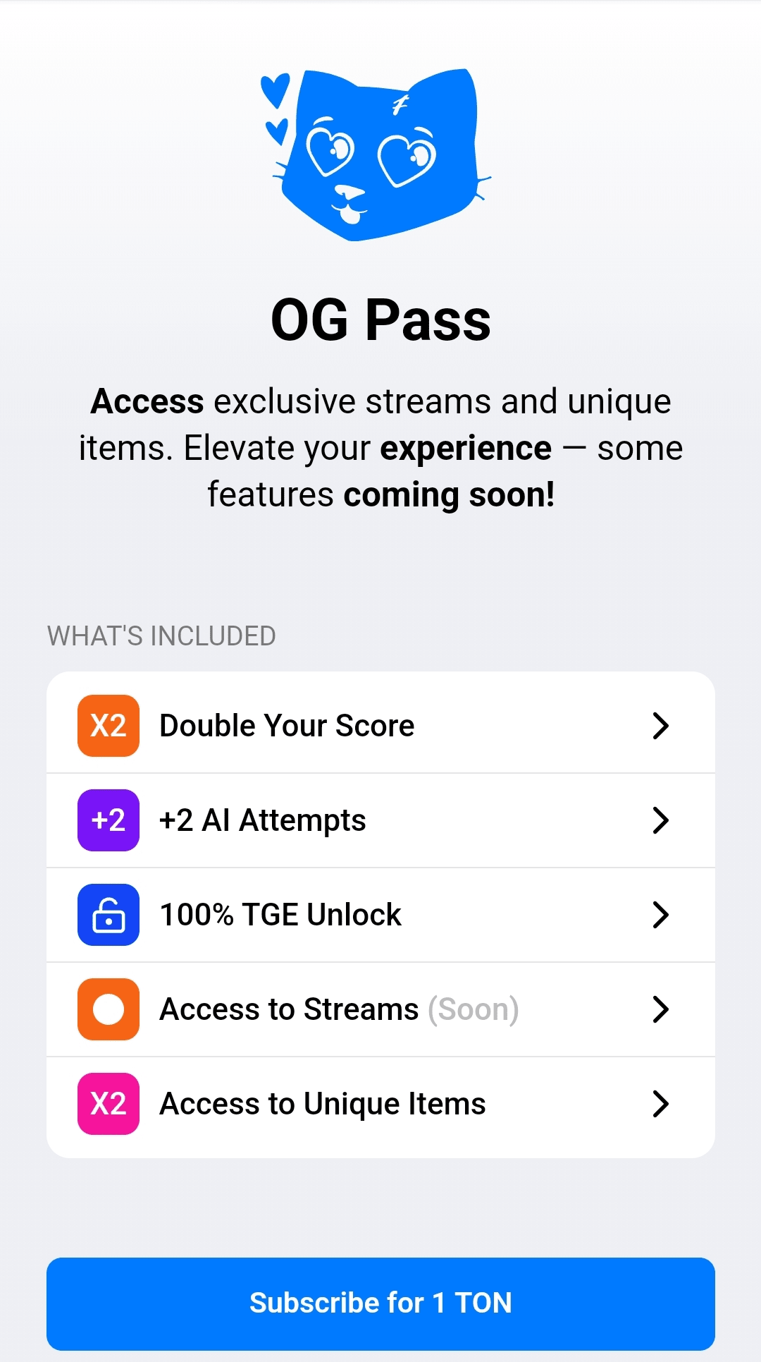 Proprio come ti obbligano ad acquistare come """attività giornaliera""" TON per loro, per AirDrop sei obbligato ad avere almeno un pass OG acquistato con un prezzo di 1 TON