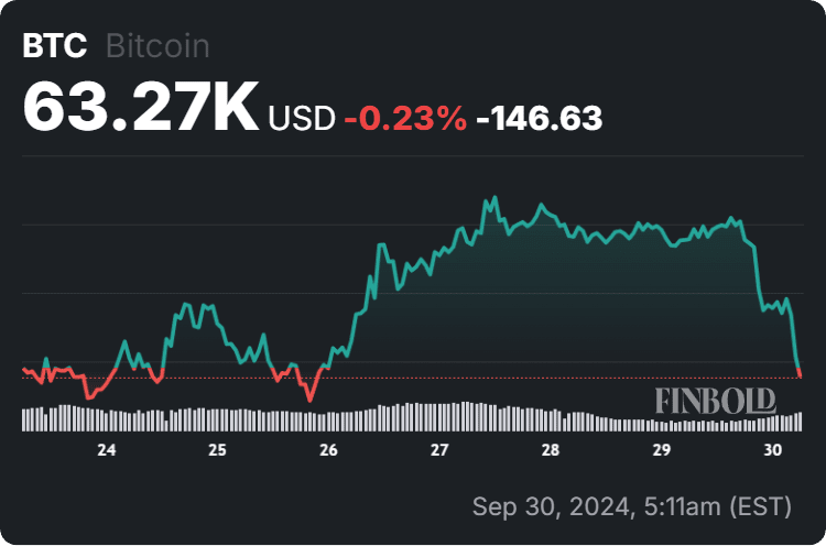 Per il momento, il Bitcoin viene scambiato al prezzo di $ 63.270, il che indica un calo del 2,98% nelle ultime 24 ore, una perdita dello 0,23% nei sette giorni precedenti, ma comunque un guadagno del 7,23% nell'ultimo mese, secondo le informazioni del grafico più recenti.