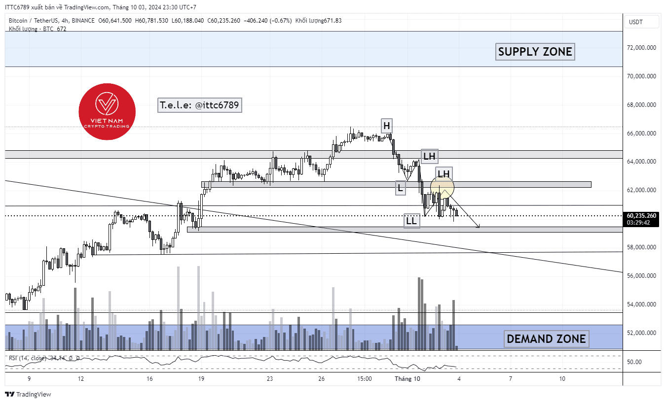 Il calo del prezzo di BTC è durato 4 giorni, inclusi 2 giorni di forti cali. Sebbene ci sia stato un recupero il 2 ottobre, subito dopo essere tornato per testare nuovamente la resistenza a $ 62,4xx,#BTCsi è ritirato e ha chiuso la candela giornaliera a $ 60.649, formando una candela ribassista Pinbar, dimostrando che gli orsi hanno il controllo completo del mercato.