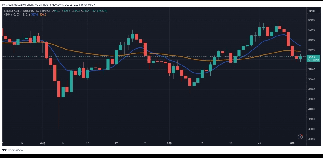 Al momento della scrittura, il token nativo dell'exchange, BNB, attualmente la quarta criptovaluta più grande sul mercato, viene scambiato a $545, con un aumento del solo 1% nelle ultime 24 ore amid il calo generale del mercato.
