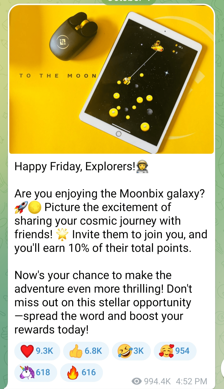 Binance sta rendendo la galassia Moonbix un'avventura emozionante con infinite possibilità. Che si tratti di guadagnare premi, sbloccare nuove funzionalità o condividere il tuo viaggio cosmico con gli amici, c'è così tanto da aspettarsi. Tieni d'occhio le stelle e i canali ufficiali di Binance per altri entusiasmanti aggiornamenti!