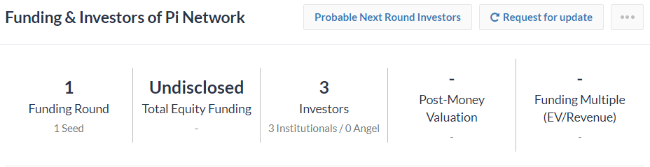 Pi Network ufficialmente non ha divulgato alcuna informazione di questo tipo. Tuttavia, queste voci si basano su dati presi da Tracxn Scan, una piattaforma che consente agli investitori di scoprire aziende in crescita in tutto il mondo.