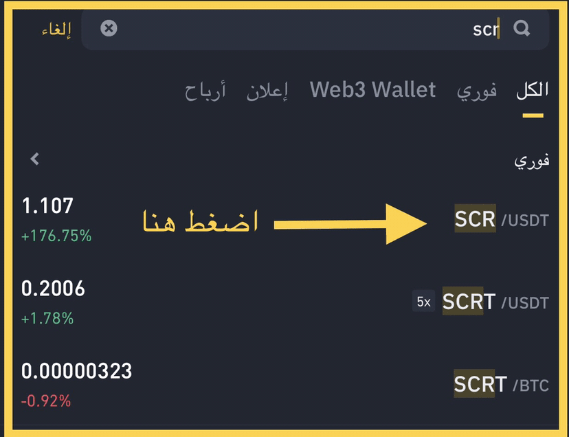 Vedrai diverse opzioni. Scegli SCR/USDT, come mostrato nell'immagine qui sotto 👇