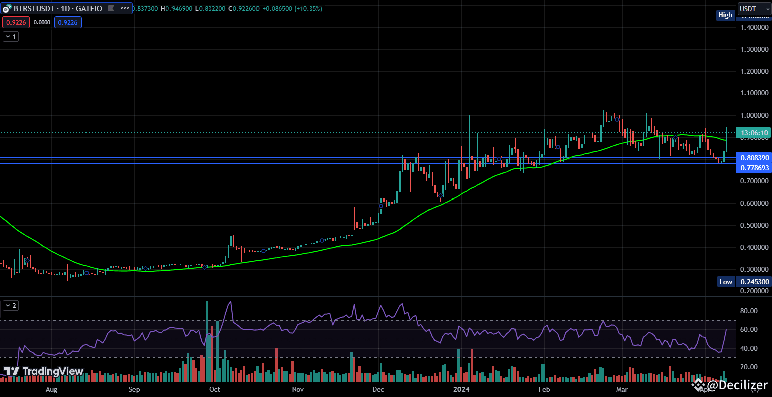 $BTRST sta avanzando costantemente, mantenendo un forte supporto a $0,31 e puntando a $0,87. Si prevede che un volume di trading robusto e la traiettoria rialzista di Bitcoin alimenteranno questa crescita, suggerendo il potenziale per un rally altcoin più ampio guidato da $ETH. Abbiamo monitorato guadagni del 190% nel rally precedente.