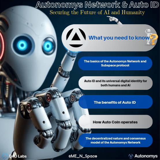 Proprio come $BTC e $ETH hanno lasciato il segno nel settore blockchain, Autonomys è qui per garantire che lo sviluppo dell'IA rimanga sicuro, trasparente e, soprattutto, etico. Al centro di questo progetto c'è #AutoID , un'innovazione rivoluzionaria che crea un'identità digitale universale sia per gli esseri umani che per l'IA. Analizziamo in che modo Autonomys sta aprendo la strada a un futuro in cui esseri umani e IA possono coesistere in modo sicuro e protetto.