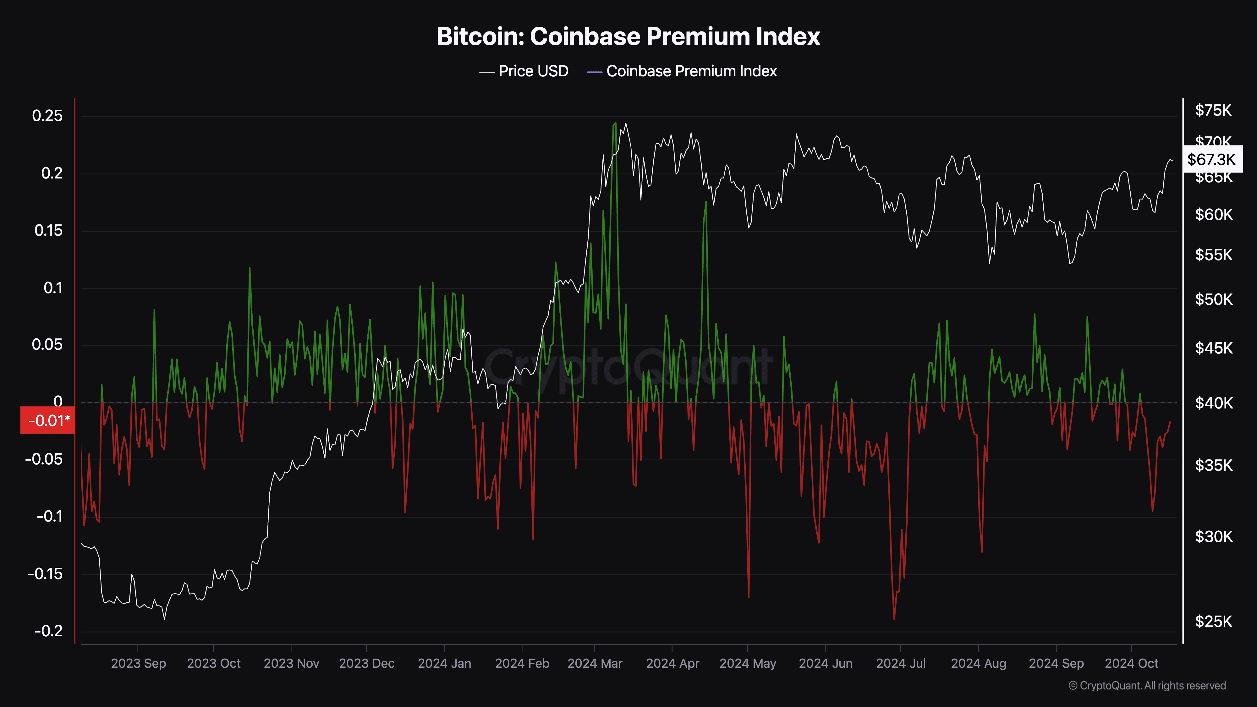 1. Gli investitori su Coinbase vendono Bitcoin più del resto del mercato.