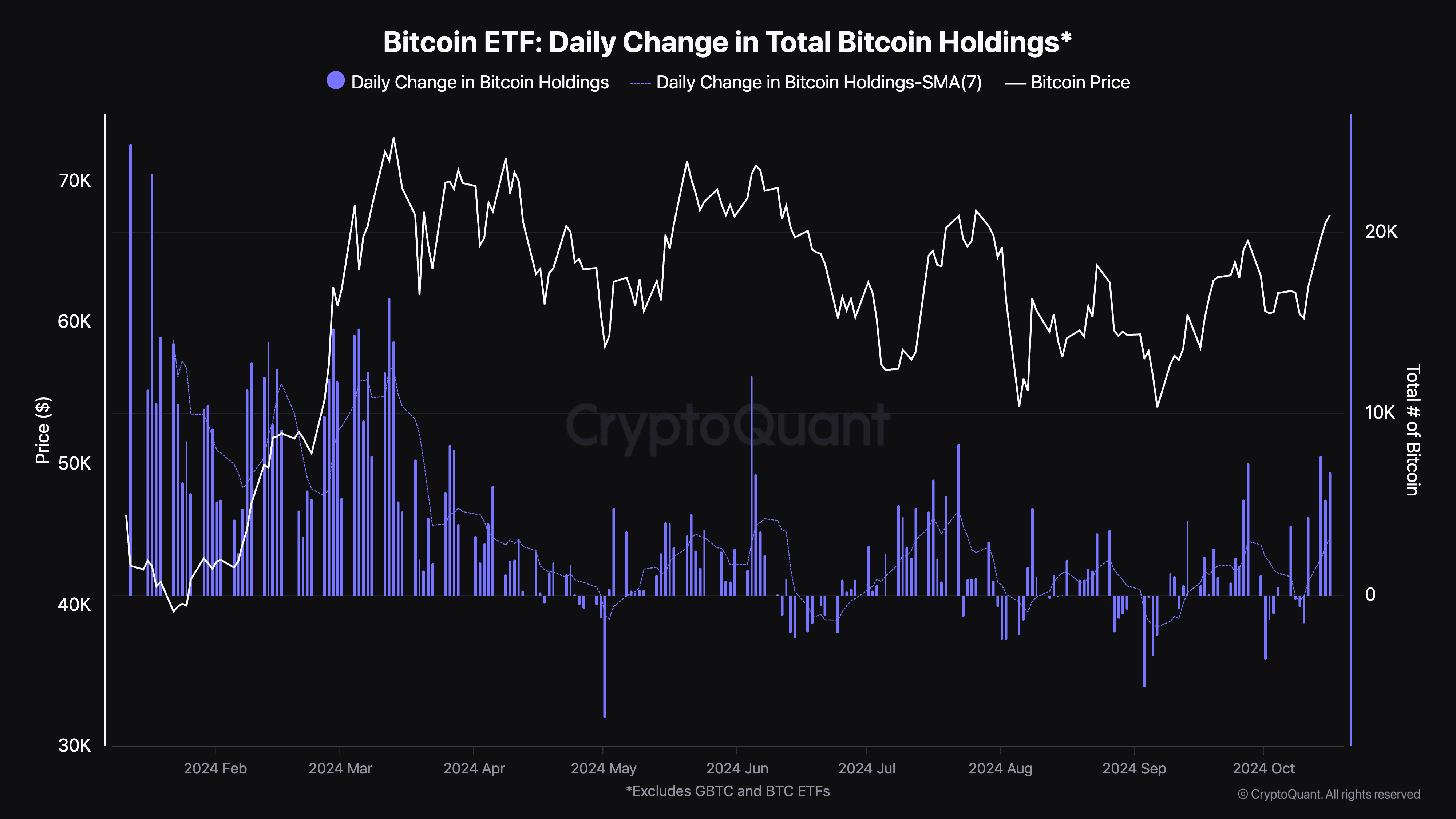 Tuttavia, la possibilità di afflussi da ETF Bitcoin Spot che influenzano i prezzi del Bitcoin nel mercato spot non può essere completamente esclusa. È altamente probabile che gli ETF Bitcoin Spot stiano ancora accumulando Bitcoin attraverso piattaforme OTC (over-the-counter). L'aspetto positivo qui è che anche senza subire uno shock di offerta simile all'inizio del 2024, quando gli ETF Bitcoin Spot stavano acquistando aggressivamente, il prezzo è attualmente solo circa il 10% al di sotto del massimo storico (ATH).