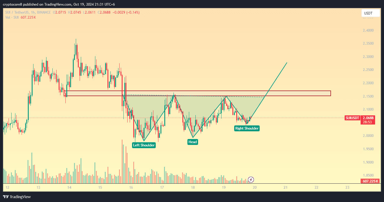 Ho individuato un pattern testa e spalle invertite su SUI, che è un segnale fortemente rialzista. Sembra pronto a raggiungere presto il livello di resistenza superiore.