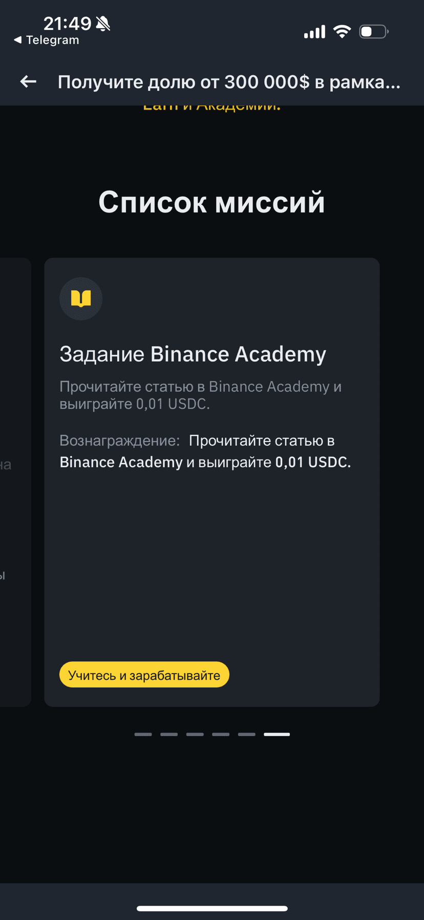 4.Ed ecco tutti i compiti per partecipare alla promozione del valore di $ 300.000 di Binance. L'ultimo, solo per la lettura puoi ottenere 0,1 $ dollaro