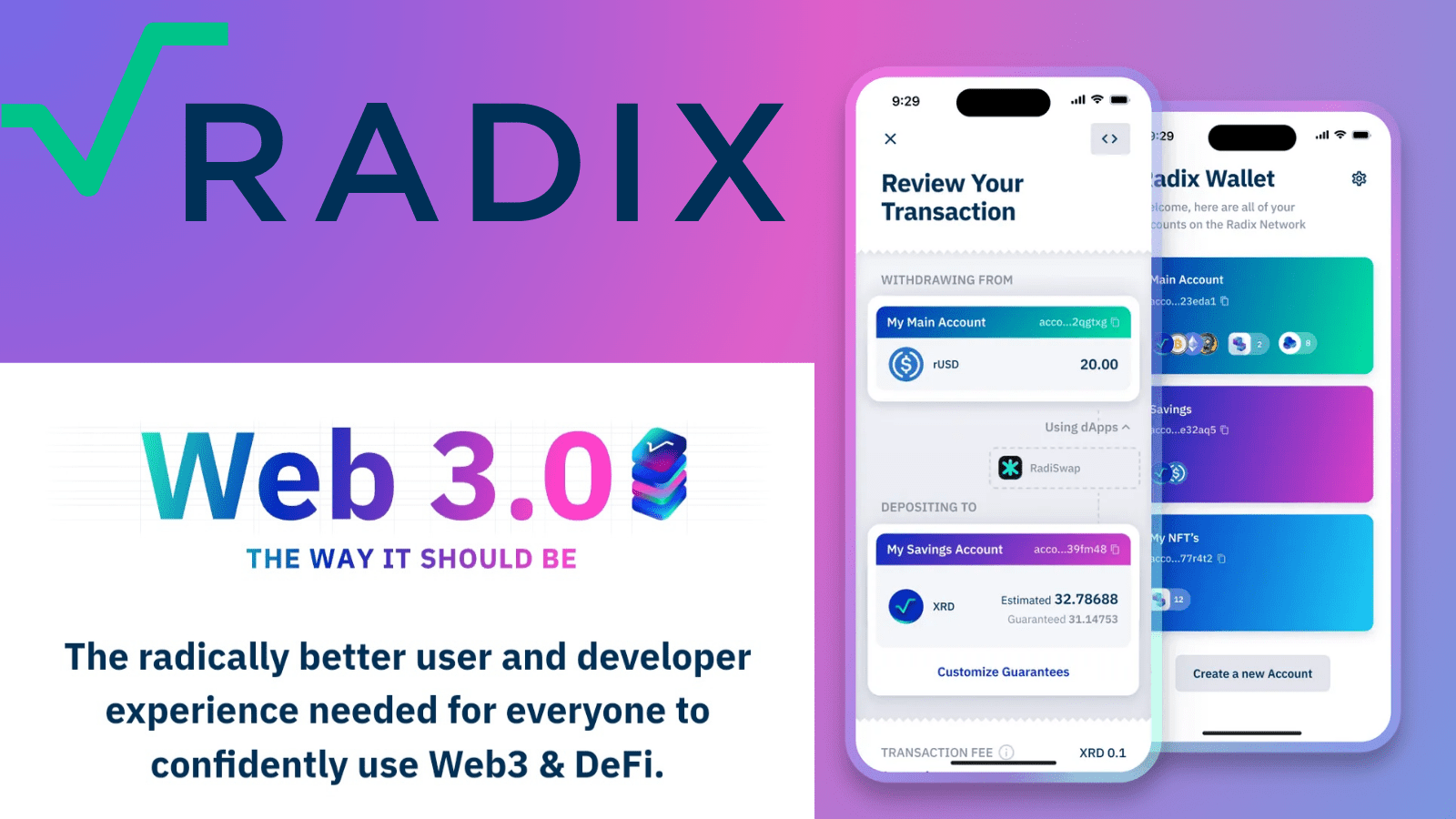 Interfaccia user-friendly: RADIX offre un'interfaccia facile da usare tramite il portafoglio RADIX. Il portafoglio Radix aiuta a semplificare l'interazione con DeFi nell'ecosistema Radix.